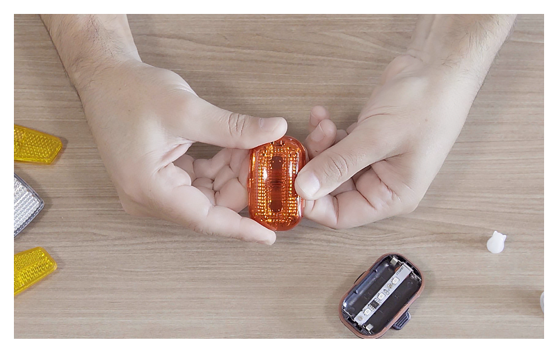 Para pegar el ojo de gato de tu bici primero limpialo bien para que no le queden rastros de polvo o grasa.