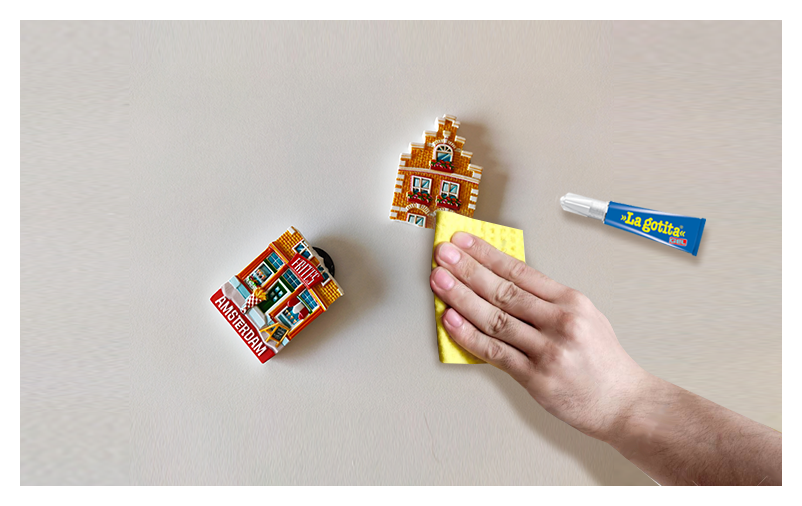 En estos cuatro pasos te mostraremos como usarla para para pegar pequeños objetos donde se necesita mayor precisión y prolijidad, como esos objetos de recuerdo pegados en tu refrigerador.